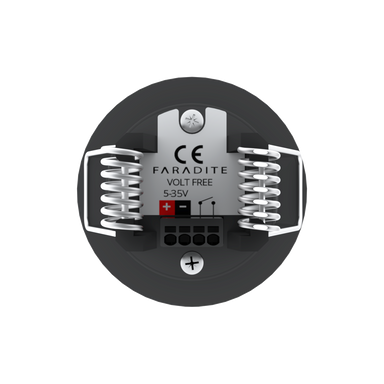 The Faradite Motion Sensor 360 Black - Volt Free (Dry Contact) is a 5-35V low profile, silent, discreet PIR (passive infrared) ceiling mounted moti...